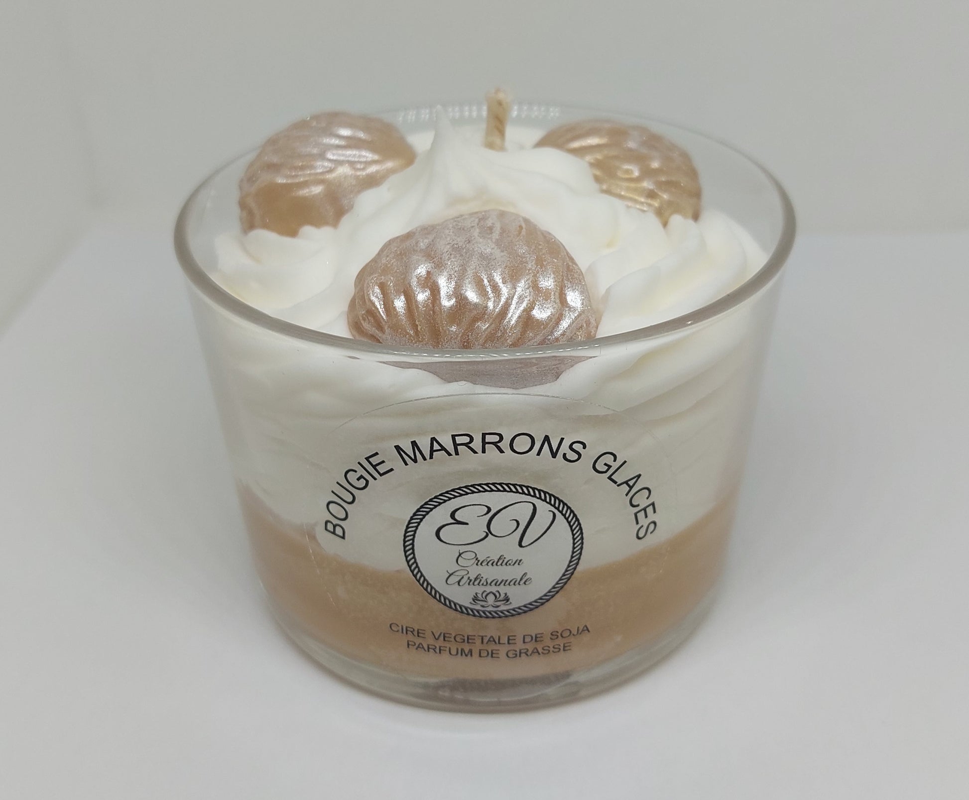 Bougie gourmande à la cire végétale de soja et au parfum de grasse Marrons glacés.