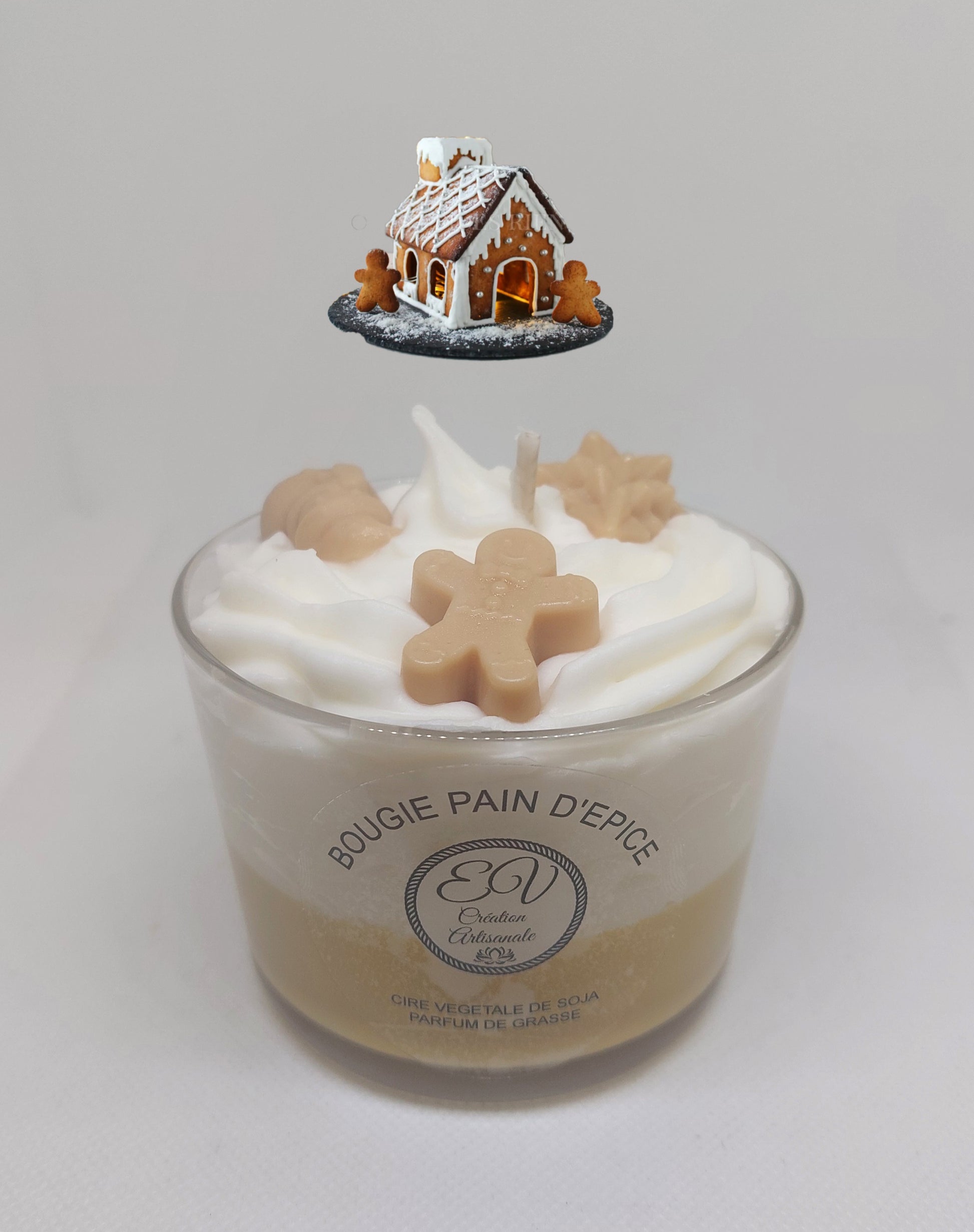 Bougie gourmande à la cire végétale de soja et au parfum de grasse pain d'épice 200g